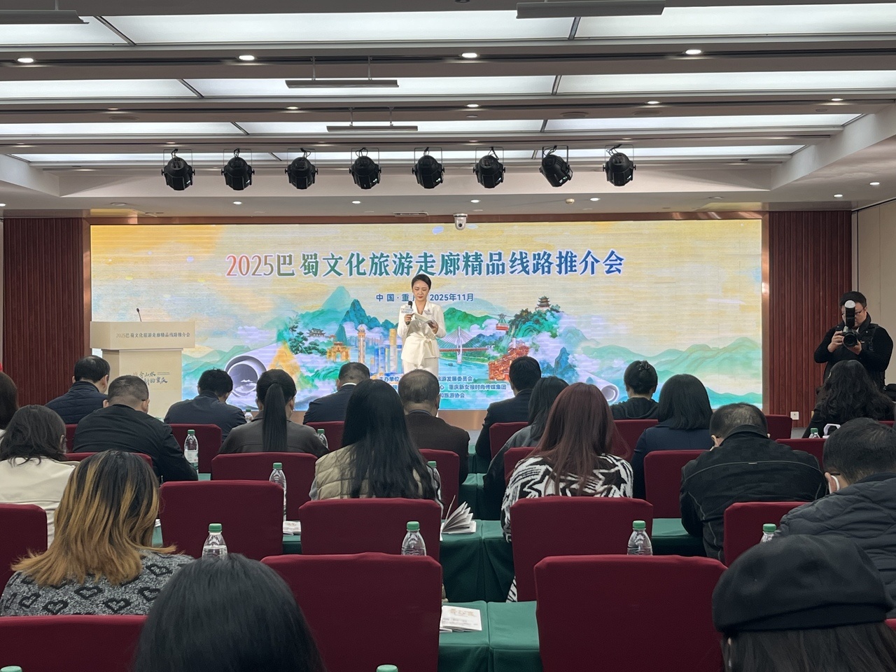为深化巴蜀文化旅游走廊建设,11月6日,重庆市文化和旅游发展委员会举行了2025巴蜀文化旅游走廊精品线路推介会,发布了5条主题鲜明的精品线路及配套旅游产品,为游客提供旅游指南。