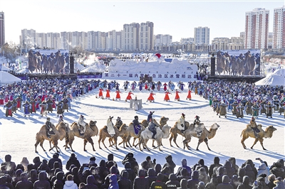 12月21日,“歌游内蒙古·欢乐冰雪季”第二十一届内蒙古自治区冰雪那达慕在呼伦贝尔市海拉尔区伊敏河文化休闲长廊精彩启幕。这是冰雪那达慕首次在伊敏河冰面上举办,内蒙古12个盟市、呼伦贝尔市14个旗市区全程参与,集中展示各地风土人情。近年来,内蒙古各地依托冰雪资源禀赋,将传统民俗与冰雪旅游相结合,推动那达慕由夏季向冬季延伸,形成具有鲜明地域特色的冰雪那达慕品牌。内蒙古日报记者 王晓博 摄