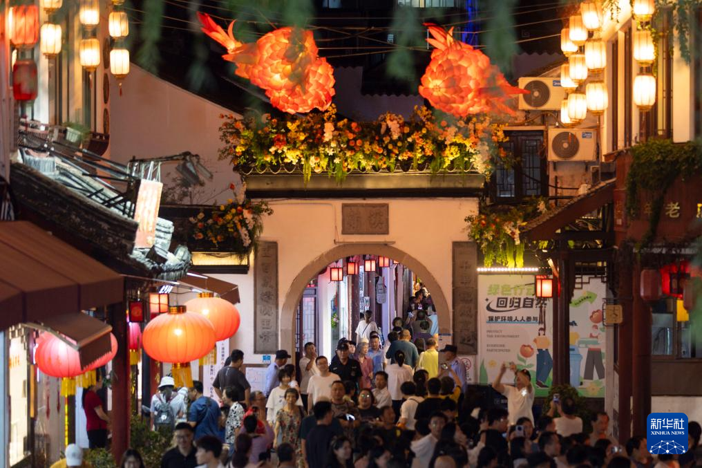 9月22日,人们在七宝古镇参观游玩。新华社记者 王翔 摄