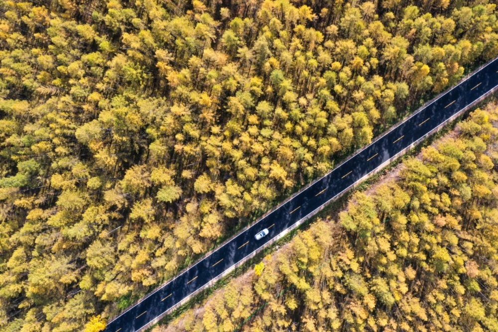 图为9月27日在吉林省安图县二道白河镇拍摄的G331风景(无人机照片)。新华社记者 张楠 摄