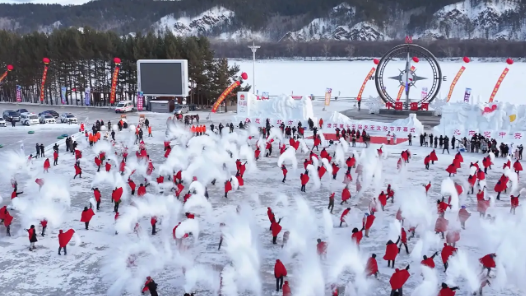 黑龙江漠河:歌红舞热雪花飞