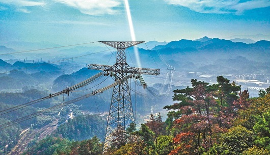 国网浙江电力建设人员在甘肃—浙江±800千伏特高压直流输电工程(临安段)开展导线安装和调整作业。