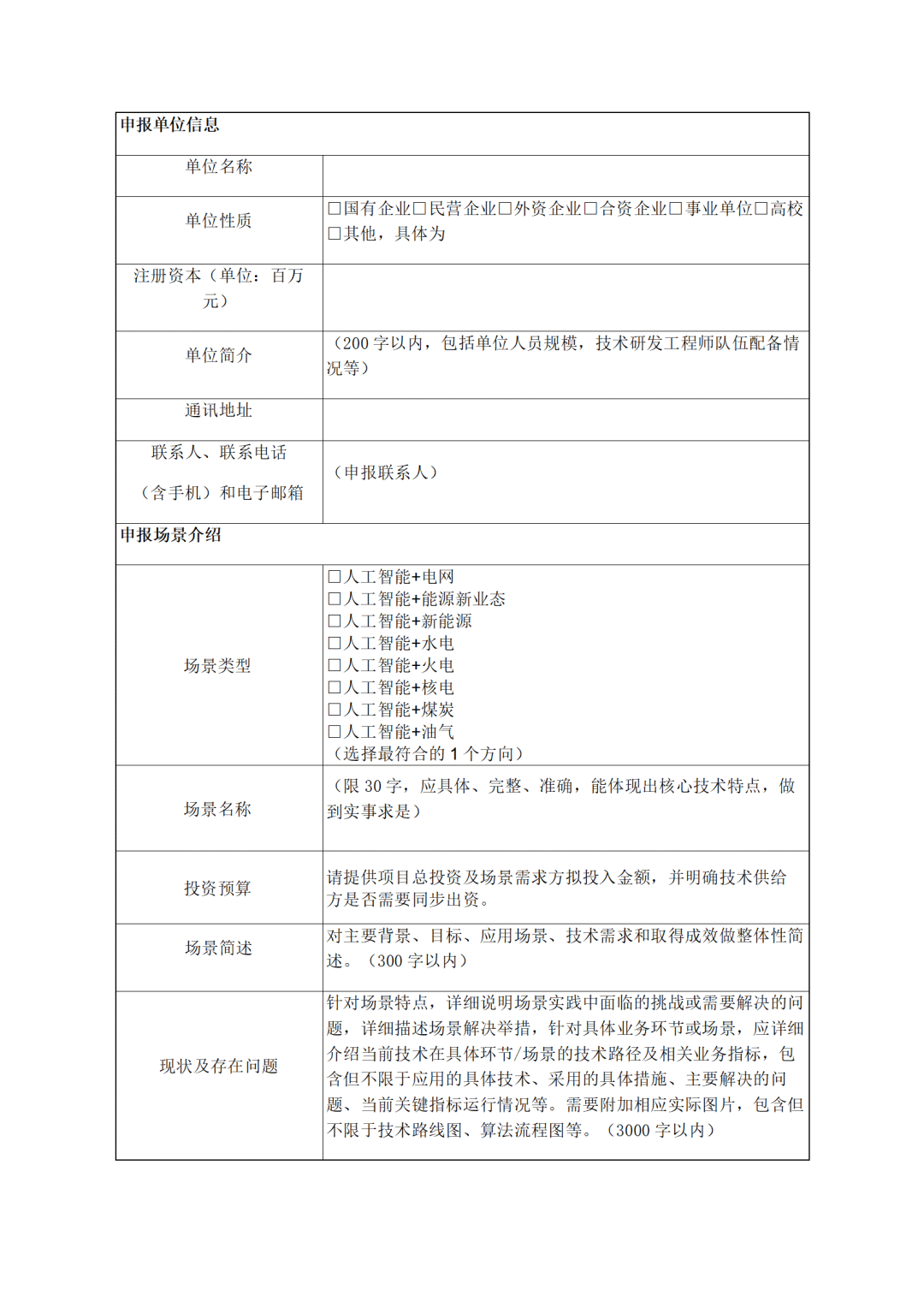 1.申报单位应是能源企业,在保证安全稳定运行及数据安全的前提下,承诺向组队成功的人工智能技术供给方开放场景及相关数据等必要资源。