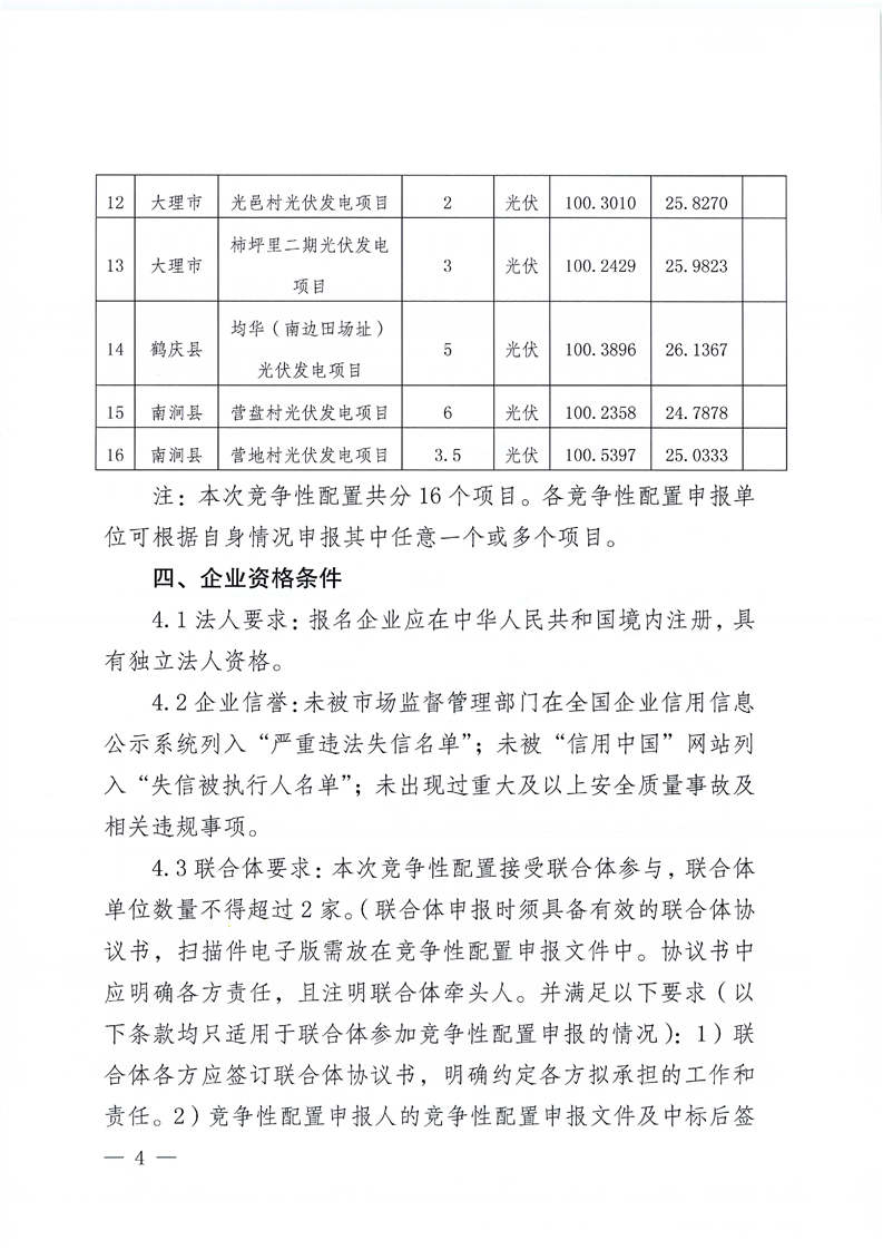 公告指出,对大理州2024年度剩余批次新能源项目的投资主体优选和项目优配采用竞争性配置方式确定。