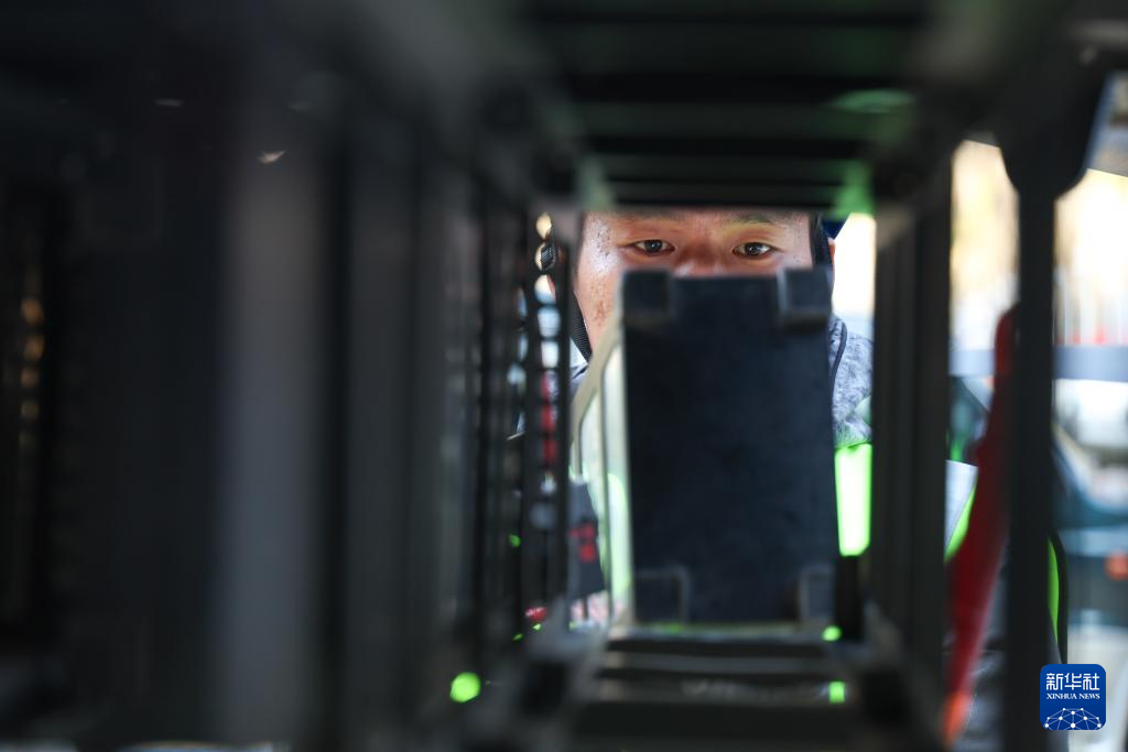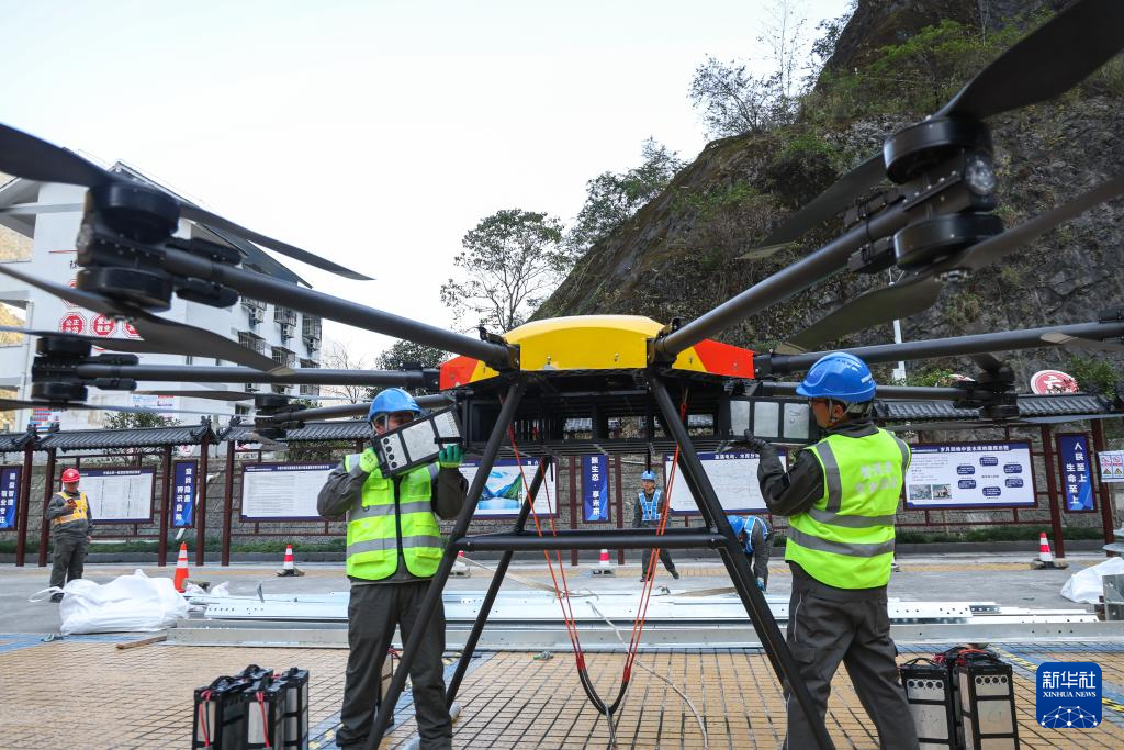 11月27日,在重庆市巫溪县中梁乡35千伏西土线改造现场,现场工作人员为无人机更换电池。新华社记者 黄伟 摄