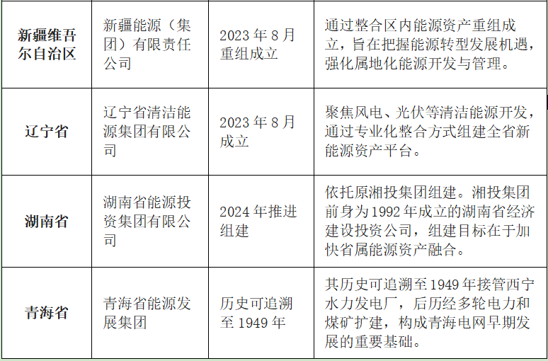 各省设立综合性能源集团的现象,贯穿于中国经济体制改革的多个历史阶段,阶段性特征较为鲜明。较早出现的能源投资平台,大多形成于二十世纪八九十年代,主要服务于缓解省内电力短缺,通常由地方政府出资设立电力建设投资公司。近年来密集挂牌的省级能源平台,则置于全国统一大市场建设和能源低碳转型的宏观背景之下,地方政府通过整合存量资产,加快获取增量新能源资源。