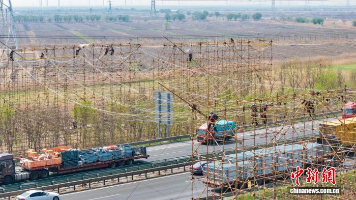 据该工程天津段业主项目部执行经理崔荣坤介绍,本次施工需两次跨越长深高速公路。为最大限度降低对道路交通的影响,施工方联合高速运营、公安交管部门建立联动机制,在高速公路两侧提前布设18米高的跨越架。“在确保跨越放线施工安全的前提下,全程做到道路不封闭、交通不中断。”崔荣坤说。