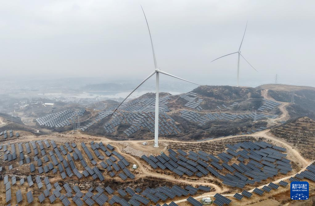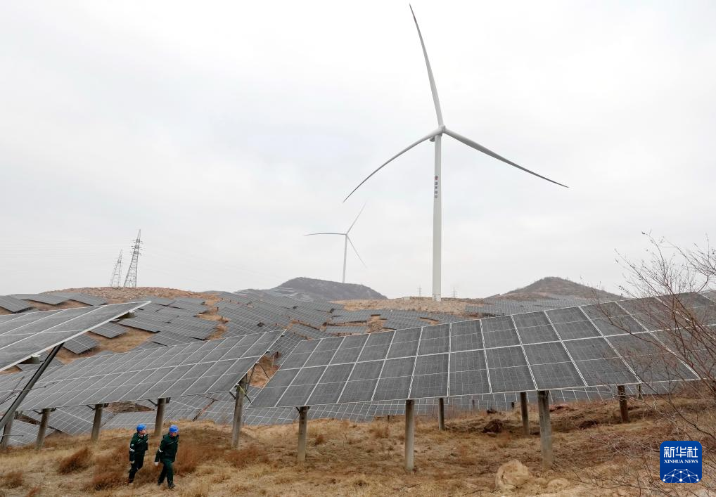 1月17日拍摄的河北省赞皇县院头镇曹家庄村附近的“风光互补”发电场(无人机照片)。新华社记者 杨世尧 摄