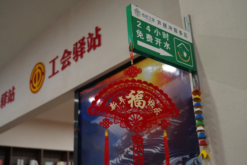 循着门口“工会驿站”和“司机之家”两块醒目标牌的指引推门而入,红灯笼、中国结映入眼帘,浓浓的节日气息扑面而来。在这处工会驿站内,休息区、就餐区、阅读角、母婴室等功能分区井然有序,让每一位奔波者都能在忙碌间隙感受到一份踏实的暖意。
