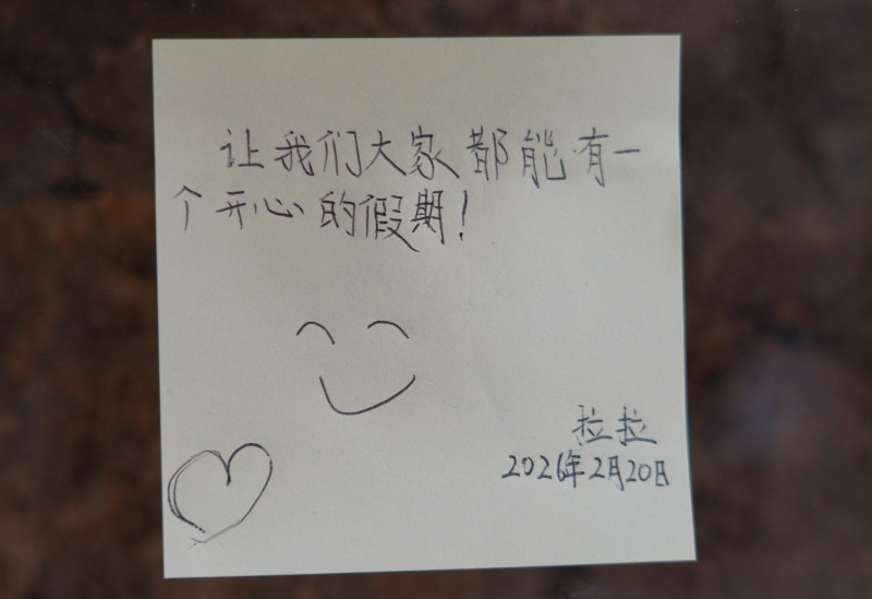 一碗水饺、一句祝福、一个歇脚的位置,这些看似微小的服务,却让大家心头一暖。驿站的留言墙上,贴满了感言:“环境优美,温暖如家”“让我们都能有一个开心的假期”……每一张纸条背后,都是一个被温暖过的赶路人。