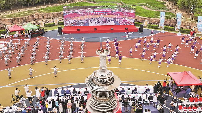 哈尔滨市总工会首届职工文化季暨“奋斗有你 最美是你”全市职工全健排舞大赛在劳动公园举行。