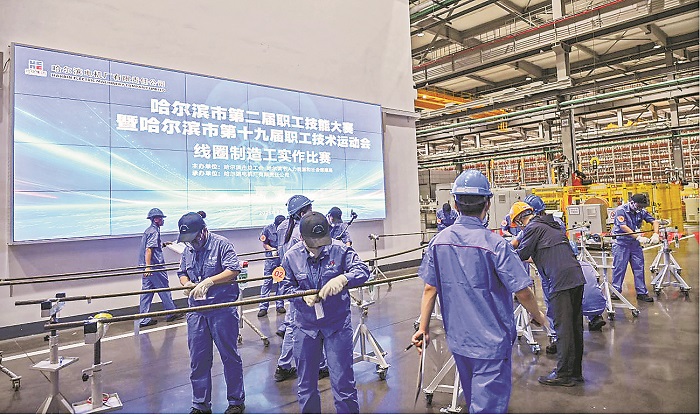 哈尔滨市第二届职工技能大赛暨第十九届职工技术运动会的工具钳工、电工、线圈制造工实作比赛现场。