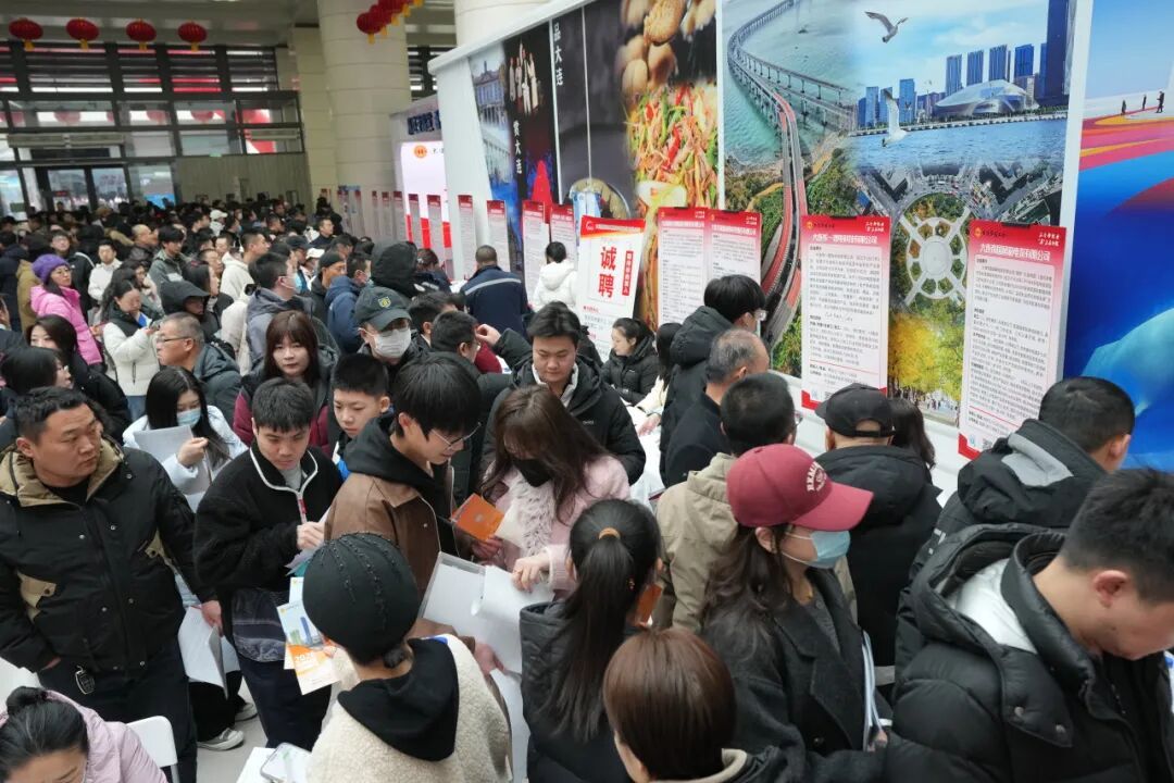 2月26日正月初十,大连北站综合交通枢纽中央大厅内人头攒动热闹非凡,大连市总工会“工会帮就业 ‘马’上启新程”2026年春风行动首场招聘会在此顺利进行。