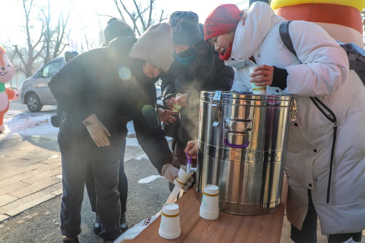 普惠服务类福利持续派送,先后推出“工会积分兑换滑雪票”“迎春家庭冰雪乐享券”等福利活动,累计发放免费冰雪体验券7000余张,让冰雪运动从“小众体验”走向“普惠共享”。九大赛区“工会服务站暖心热饮服务”同步启动,全程配备暖心姜枣茶,一杯热饮、一处歇脚地,成为冰天雪地中最温暖的底色。