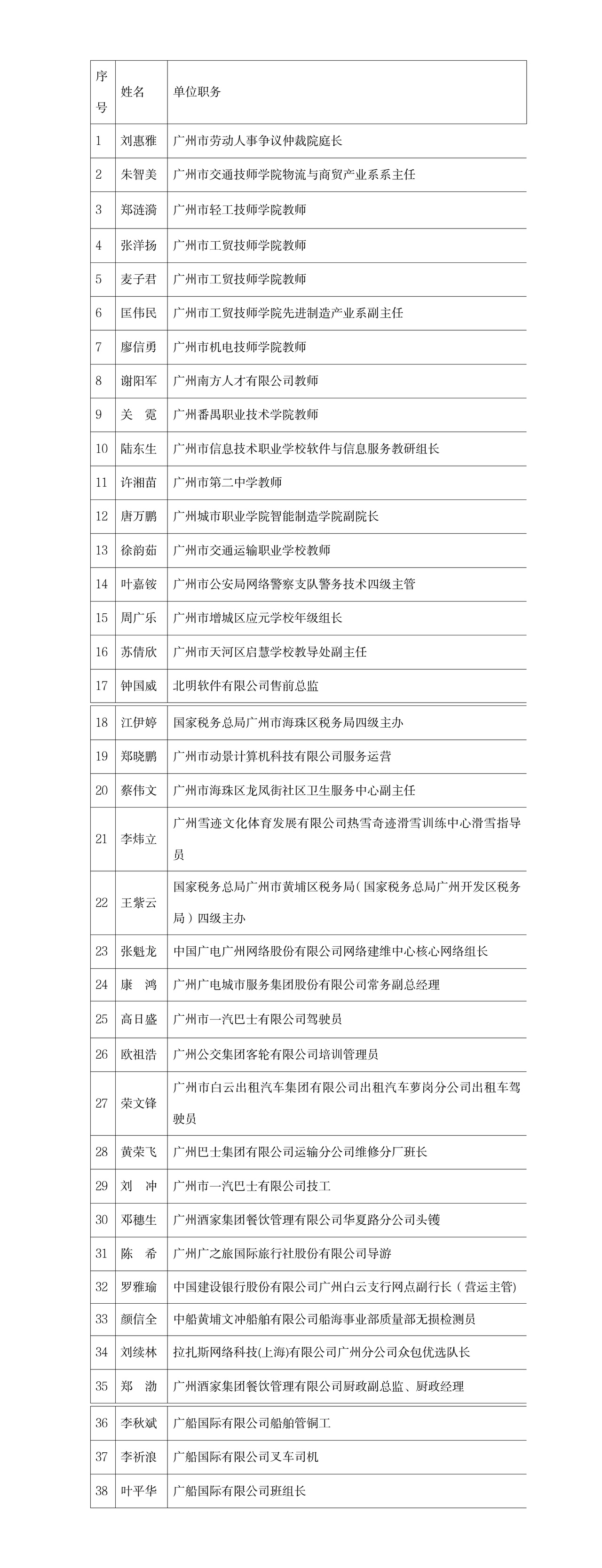 38位2023年度广东省职工职业技能大赛第一名获得省五一劳动奖章人员名单