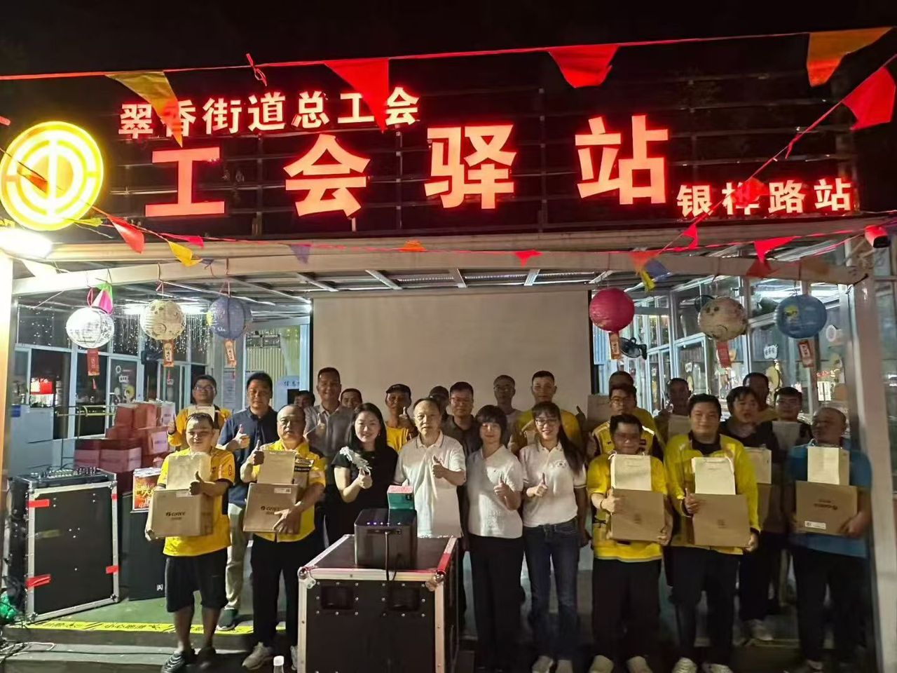 10月4日,珠海市总工会联合香洲区总工会在翠香街道工会驿站举办“金秋庆国庆明月映团圆”新业态群体建会入会暨国庆中秋联欢活动。活动通过丰富多彩的文娱互动和暖心服务,为新就业形态劳动者及其家属营造浓厚节日氛围,送上真挚的节日祝福。