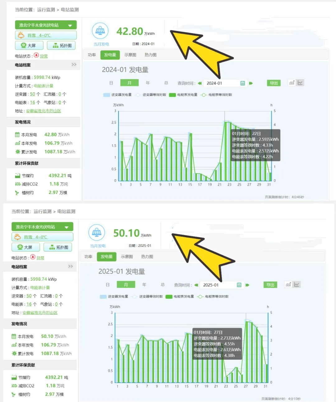 例如安徽滁州佰世达木业电站,投用后月度发电量同比提升19.35%;宁丰木业淮北项目提升超过17.05%。