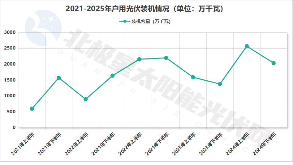 与工商业的骤然遇冷形成对比,户用光伏市场则展现出较强韧性。2025年下半年,户用光伏新增装机2031.7万千瓦,较上半年的2563万千瓦仅小幅回落,且对比往年半年间新增装机规模,仍处于较高水平。