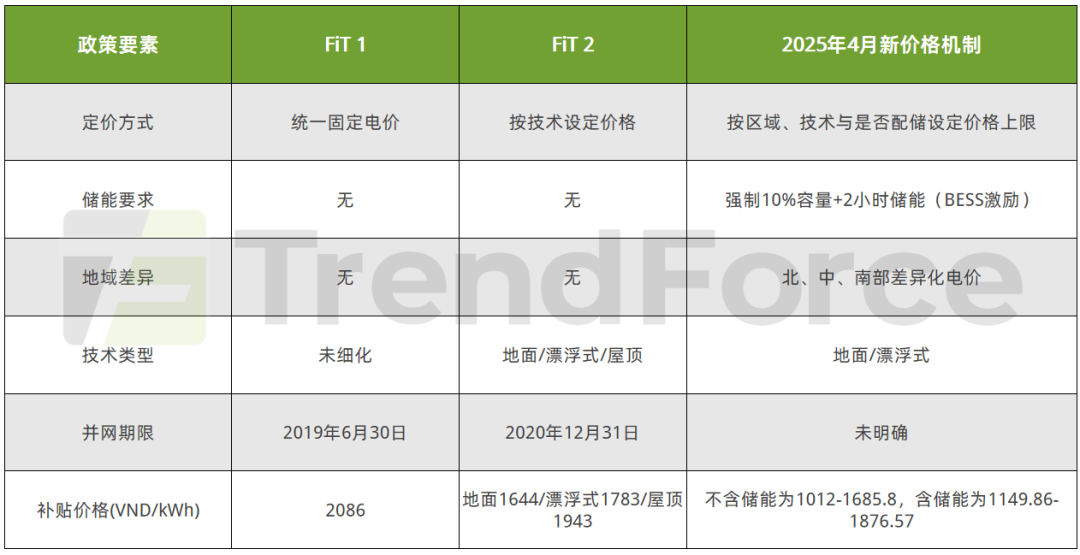 表:2025年4月新价格机制与FiT 1、FiT 2对比