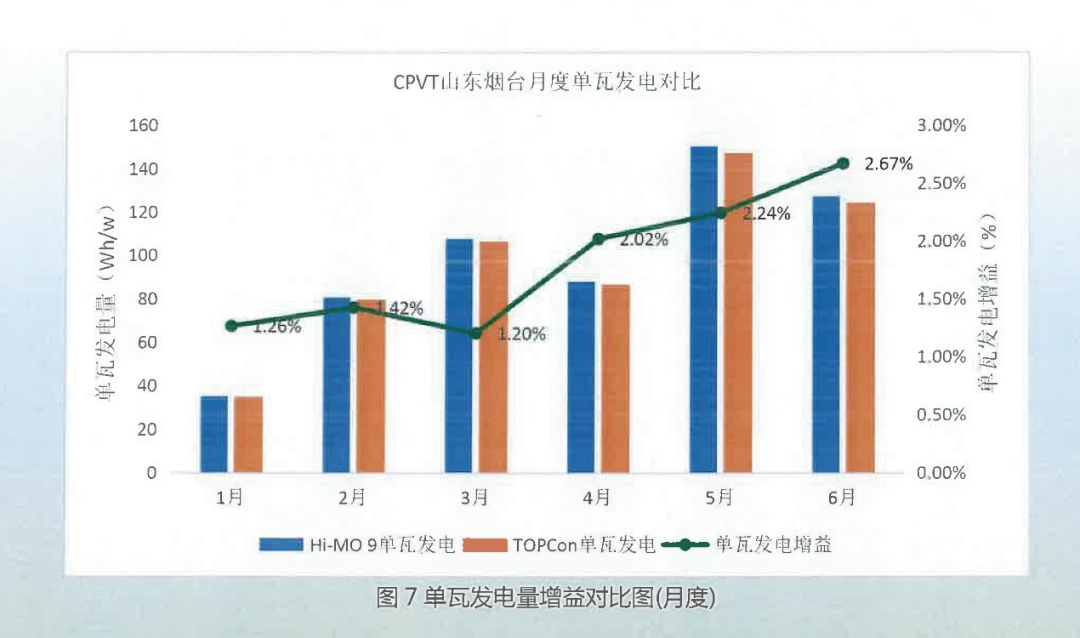 在单瓦发电量方面,2025年1月至6月的监测期内,Hi-MO 9组件相比TOPCon组件实现发电增益1.94%,这一优势在实际电站运营中将转化为显著的发电收益提升。
