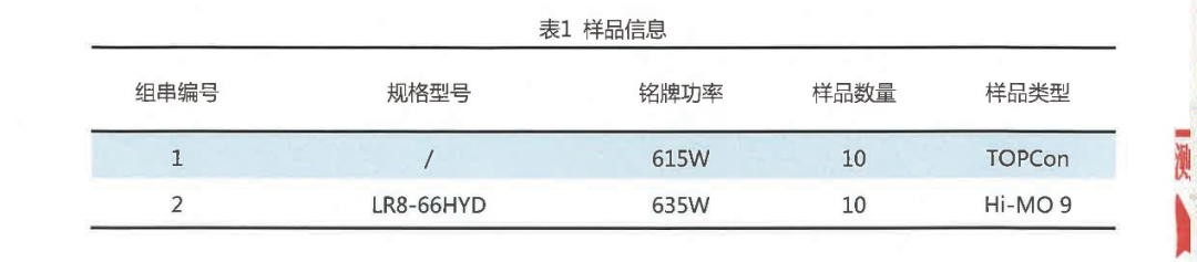 此次实证报告发布了BC与TOPCon两种技术路线的实证结果。项目选用了隆基绿能BC二代技术Hi-MO 9组件产品10块,TOPCon产品10块,具体参数如下: