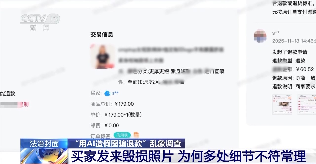 针对这类AI造假骗退款的纠纷,专家提醒,商家要第一时间把聊天记录、假图凭证等都保存好,不管是向平台申诉,还是通过司法途径,完整的证据都是维护自己权益的底气。