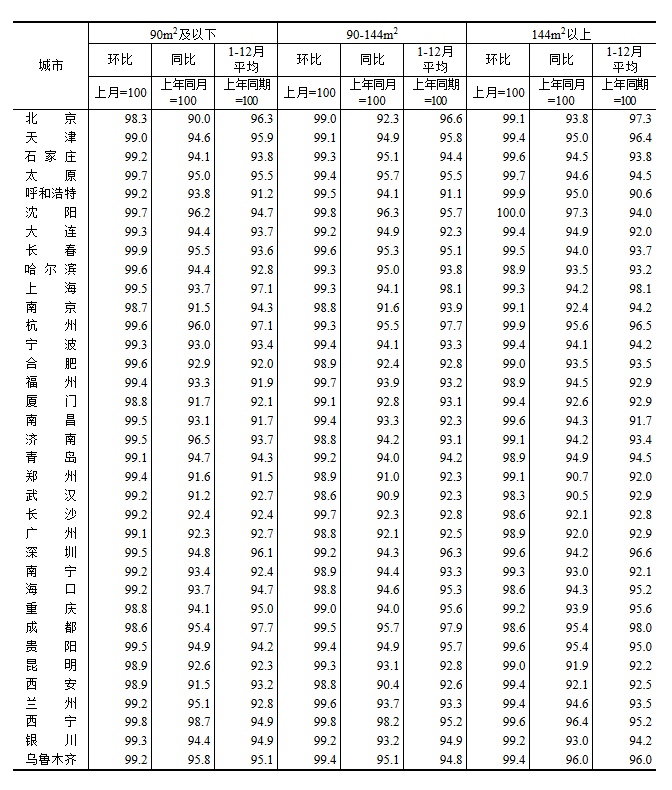 表1:2025年12月70个大中城市新建商品住宅销售价格指数