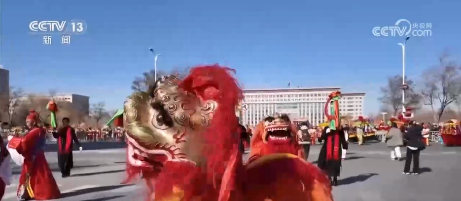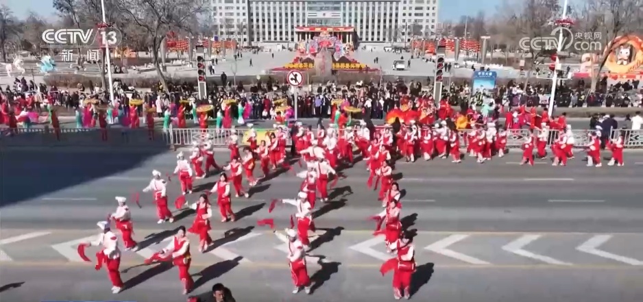 在社火巡演现场,鼓点铿锵、彩绸飞扬,舞龙舞狮气势昂扬,秧歌腰鼓热闹欢腾,现场还有踩高跷、划旱船等趣味十足的表演,精彩纷呈。