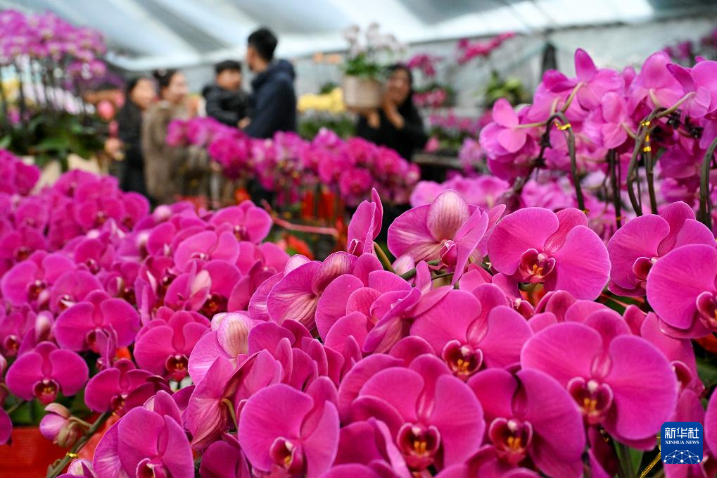 2月15日,人们在河南省商丘市睢阳大道一处花卉市场选购鲜花。