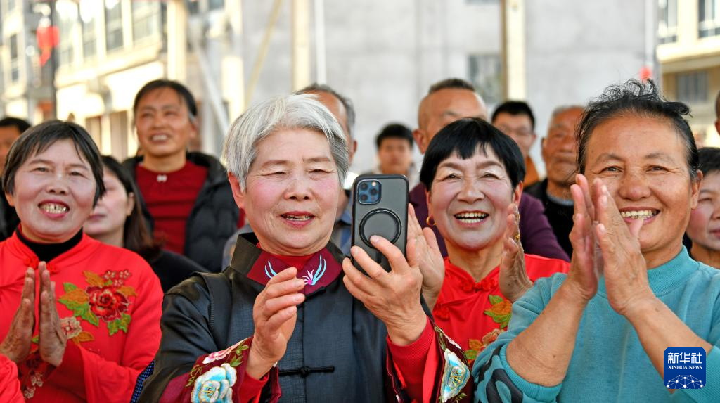 2月15日,村民在浙江省台州市仙居县下各镇溪上村观看“村晚”表演。