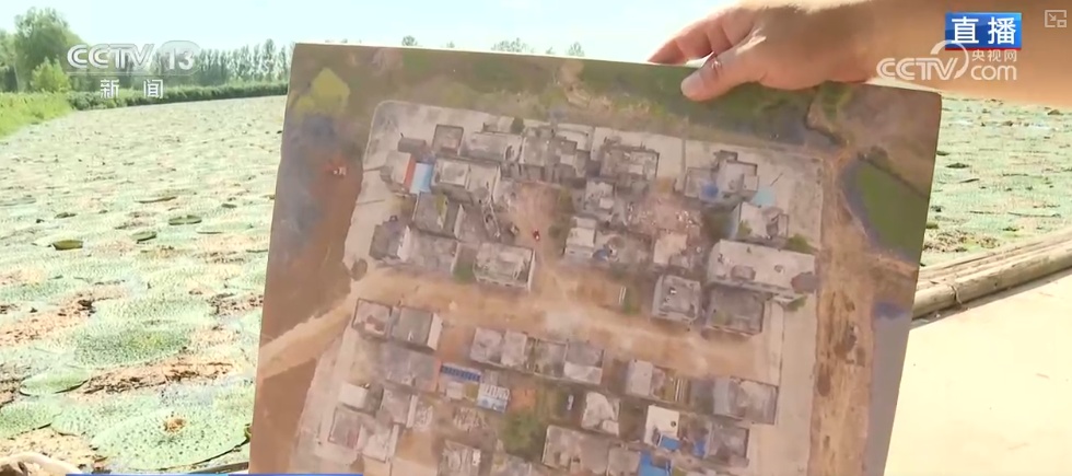 离芡实种植基地不远是当地特有的建筑——庄台,看上去像是屹立在平地之上的“土丘”,这是人们用来抵御淮河水灾的。早期的庄台多为自发修建,环境比较差。大家看我手上的这张老照片,这就是过去庄台的样子。曾经,这里人均居住面积不足10平方米,房屋破旧、环境脏乱,“垃圾靠风刮、污水靠蒸发”是当时的真实写照。现在当地通过居民迁建、人居环境整治、水电改造、打通主干道、铺设污水管网等措施,庄台过去脏乱差的面貌一去不复返。如今的庄台,道路宽敞,绿树成荫,公共绿地、景观树随处可见,居民的居住条件和生活环境大为改观。