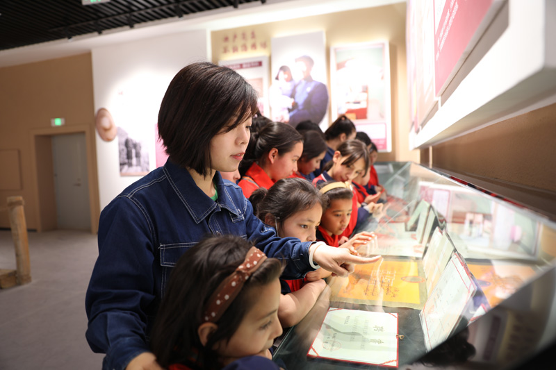 国网和田供电公司“爱心妈妈”志愿服务队队员带孩子们参观王蔚同志纪念馆。