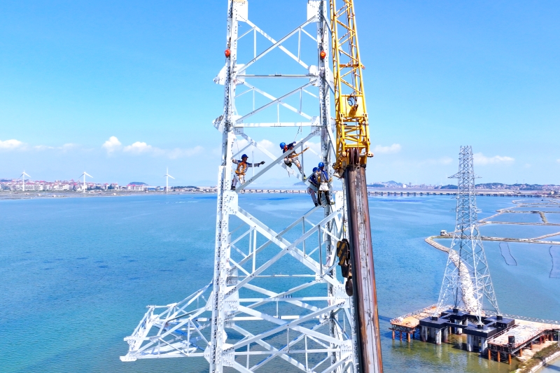 10月12日,在位于福建莆田的上庄—天云220千伏海上风电送出工程建设现场,国家电网福建送变电公司施工人员开展组塔施工作业。该工程投运后将进一步提升莆田市东部平海湾等地区新增海上风电的送出能力。