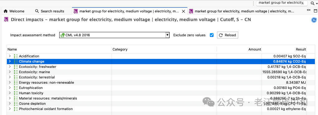 再来看看ecoinvent的数据,现在最新的版本已经到了3.11, 这个版本中国的电力碳足迹因子也有了很大的降低,为0.8467 kgCO2e/kwh,虽然降低了不少,但是与我们发布的0.6104还是有很大差距。