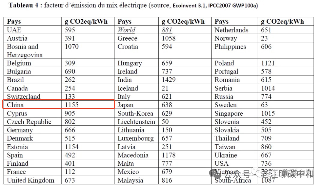 你说这张表中的排放那么高有没有问题呢?我觉得是有的,他们计算中国的电力碳足迹采用的数据是很老的数据,所以不公平。