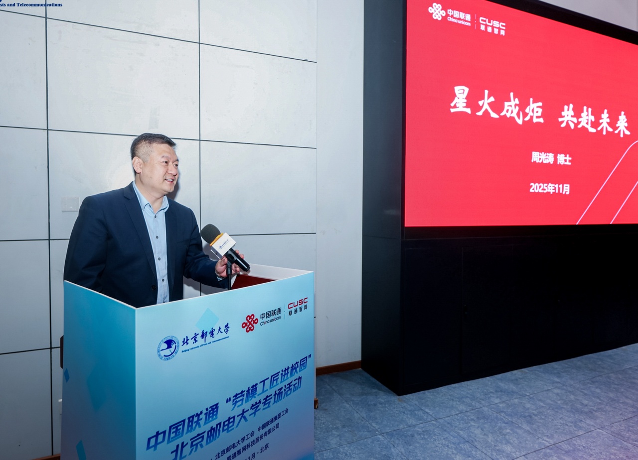在11月5日举行的专场活动中,中国联通工匠、领军人才、联通智网科技公司车辆智能网联研究院院长周光涛博士,分享了在“车路云一体化”领域的攻坚故事。十余年来,他带领团队突破多项关键技术,支撑国家智能网联汽车战略落地,推动北邮与智网科技共建联合实验室。“从母校汲取理论养分,以产业实践反哺育人”,周光涛的成长历程为在场学子树立了鲜活标杆。