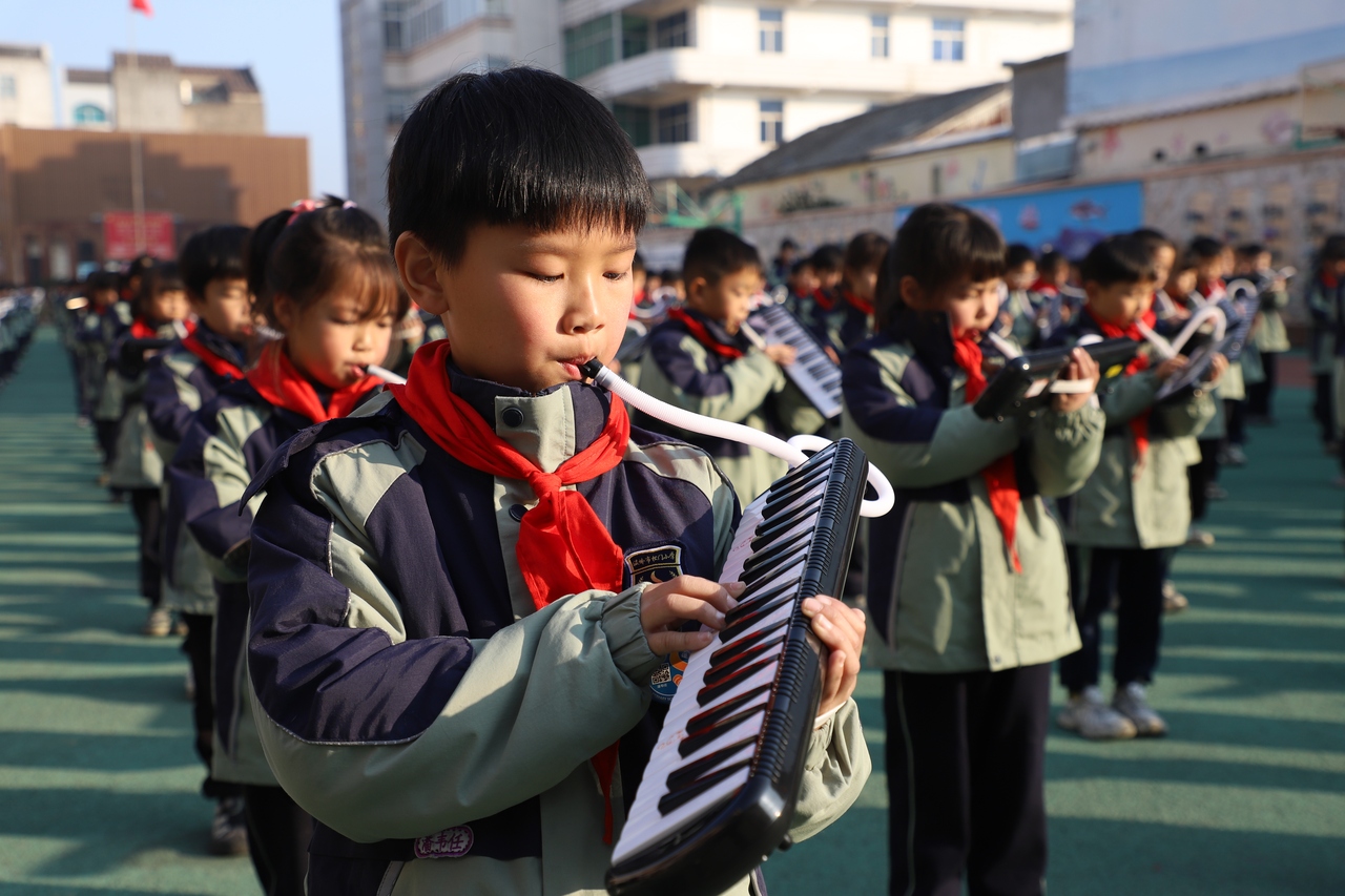 “吹奏口风琴不仅能锻炼肺活量,更能培养手指灵活性与气息控制的协调能力。”校长柯凌鹏介绍道。学校精心编印《指尖琴音》校本教材,科学设置规定曲目与自选曲目,循序渐进提升学生演奏水平。今年,全校学生共同挑战的合奏曲目《小鸟小鸟》,以轻快灵动的旋律,化作千只“小鸟”在琴键上展翅翱翔。