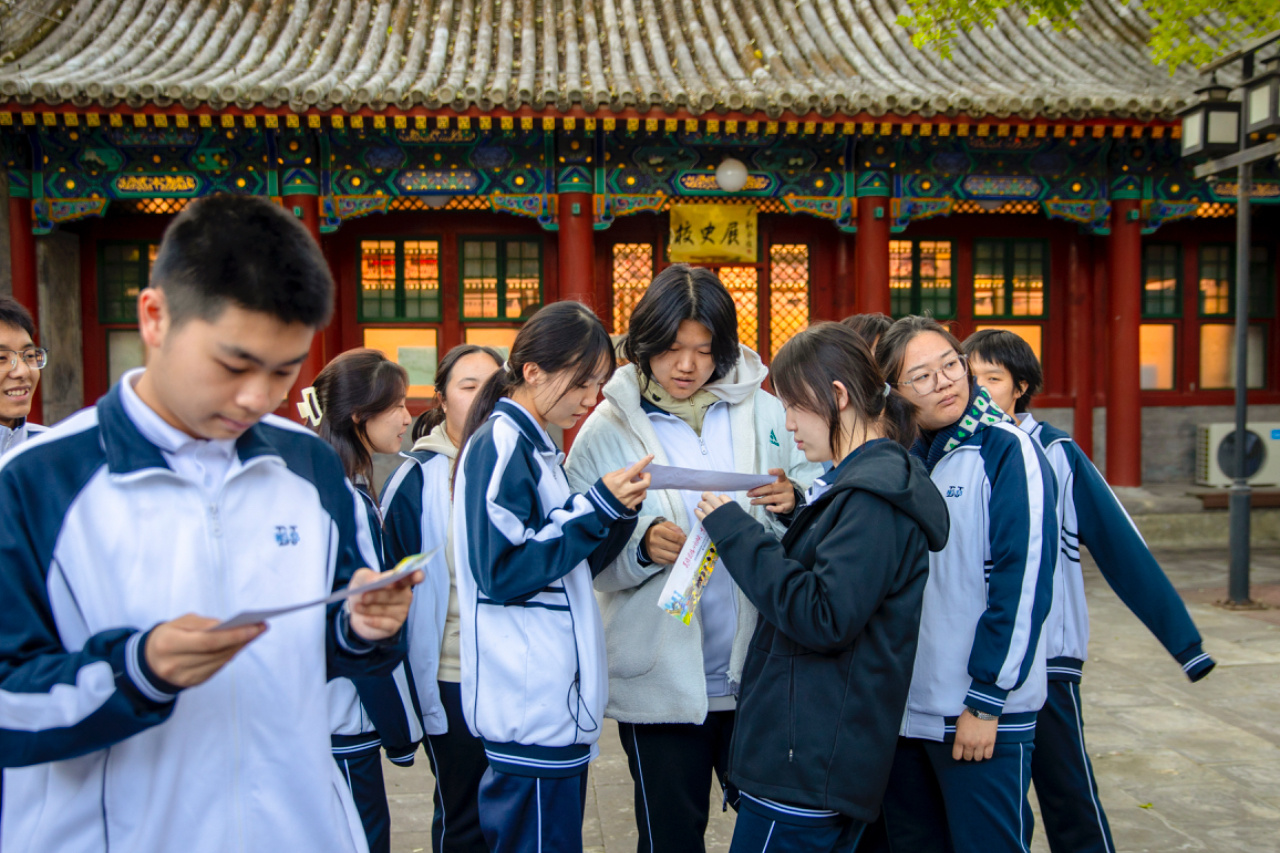 10月22日,北京市第十三中学,师生在校园内协力完成拼图。