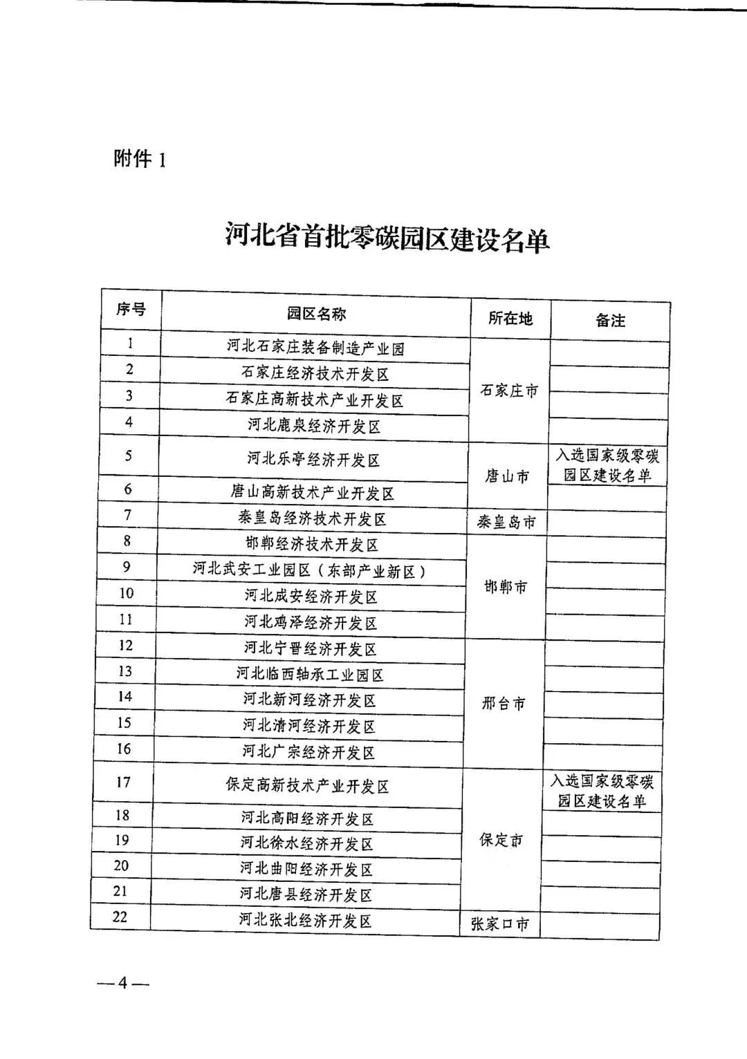 文件显示,河北省发改委、河北省工信厅联合发布了全省首批零碳园区建设名单,涉及35个园区。其中,河北保定高新技术产业开发区、河北沧州沧东经济开发区、河北唐山乐亭经济开发区3个园区入选首批国家级零碳园区建设名单。