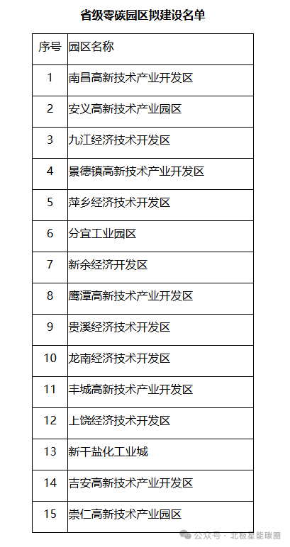 2026年2月4日,江西省发改委发布省级零碳园区拟建设名单的公示。经园区申报、地方推荐、专家与部门联审等程序,确定了省级零碳园区拟建设名单,共纳入15个园区。