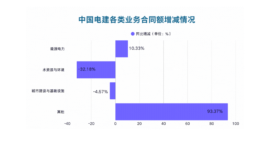 中国电建能源电力业务占总合同额63.1%,新签合同额同比增长10.33%,成为绝对增长引擎。其中新能源与抽水蓄能占能源电力业务超80%。