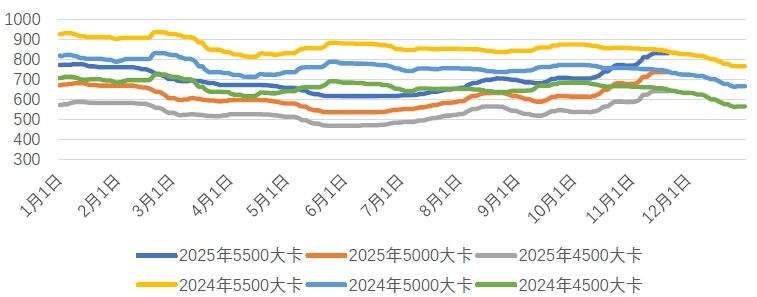 整体来看,本周市场的核心矛盾在于“强预期”与“弱现实”的激烈博弈。一方面,冬季供暖需求增长、安全生产检查常态化以及高昂的发运成本共同构筑了市场对后市看涨的强预期,为煤价提供了底部支撑;另一方面,电厂、港口等环节库存相对高位,日耗提升尚不明显,表现为市场需求的弱现实,导致下游对高价市场煤的接受度普遍较低,实际采购多以长协和刚性需求为主,市场整体成交冷淡,陷入观望僵持状态。