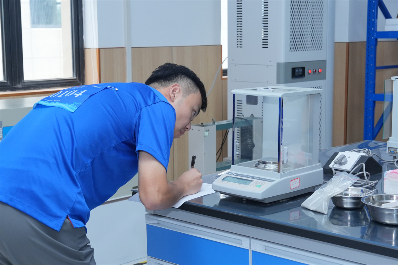 大赛以“锤炼过硬技能,服务重点工程”为核心,构建“理论+实操”的综合考评体系,其中理论考试占总成绩30%,实操考核占比70%,全面检验选手专业素养。理论考试涵盖混凝土及原材料、金属材料、土工等多领域国家标准与行业规范,精准考查选手理论功底;实操环节聚焦胶凝材料比表面积测定、机制砂亚甲蓝值检测、钢筋保护层测试、灌砂法量砂密度测定4项核心技能,均为重点工程试验检测中的关键工序,直击岗位实操痛点难点。