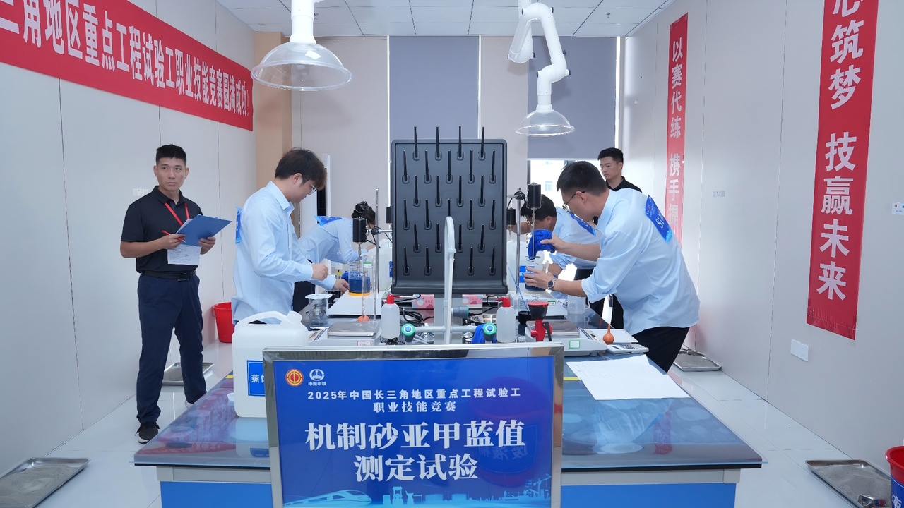 9月27日至29日,2025年中国长三角地区重点工程试验工职业技能竞赛在中铁四局集团试验检测中心基地举办。本次竞赛由上海市总工会、江苏省总工会、浙江省总工会、安徽省总工会与中国中铁工会联合主办,安徽省省部属(直管)企事业工会、中铁四局工会承办,安徽中铁工程技术有限公司协办。来自中国中铁长三角地区16家二级单位的19支代表队共计76名试验精英同台竞技。