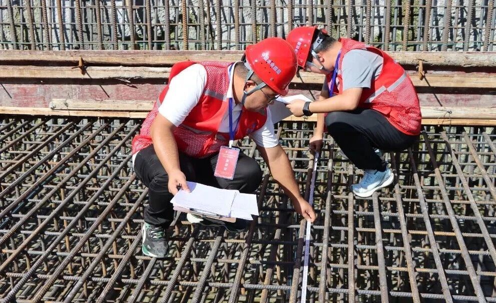 技能实操聚焦基础面清理、钢筋安装、模板加固、铜止水安装等检查,全面检验选手对规范标准的掌握程度与现场应用能力。比赛分三轮进行,各小组每轮选派一名选手在现场完成全流程质量检查。选手们迅速投入状态,争分夺秒勘察仓号,全神贯注完成数据核查,认真检查工艺细节,仔细排查安全质量方面存在的问题,提出针对性改进建议。