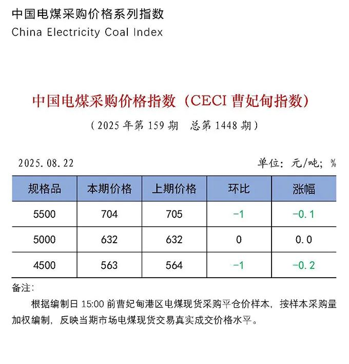 中国电煤采购价格指数(CECI曹妃甸指数)第1448期