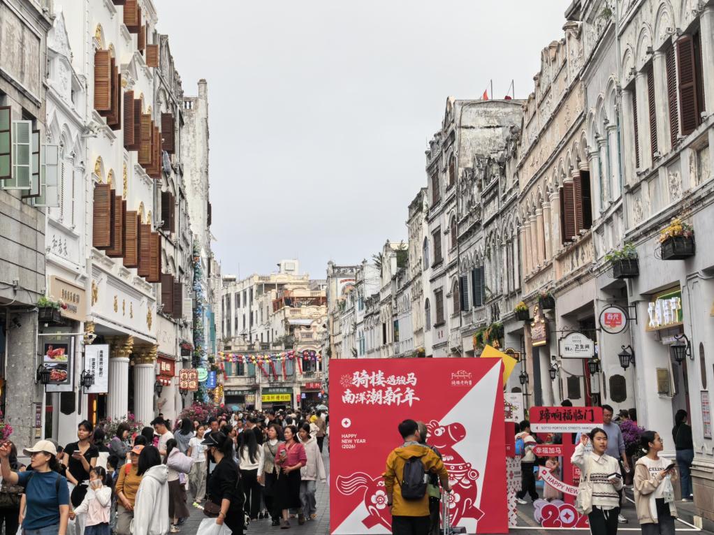 临近春节,采买年货的本地居民和旅游度假的游客纷至沓来,海口骑楼老街里,每一条街巷都人头攒动、摩肩接踵。据统计,海口骑楼老街的客流量从2023年200多万人次跃升至2025年1500多万人次,预计2026年全年客流量将突破2000万人次。