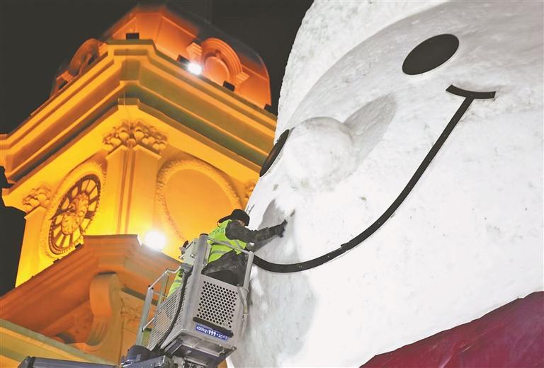 当次日的晨光洒向群力音乐公园,大雪人已用光洁的“面容”开始迎接新一天的游客。那张被精心修复的笑脸,每一次精彩的绽放,总有人在默默守护。
