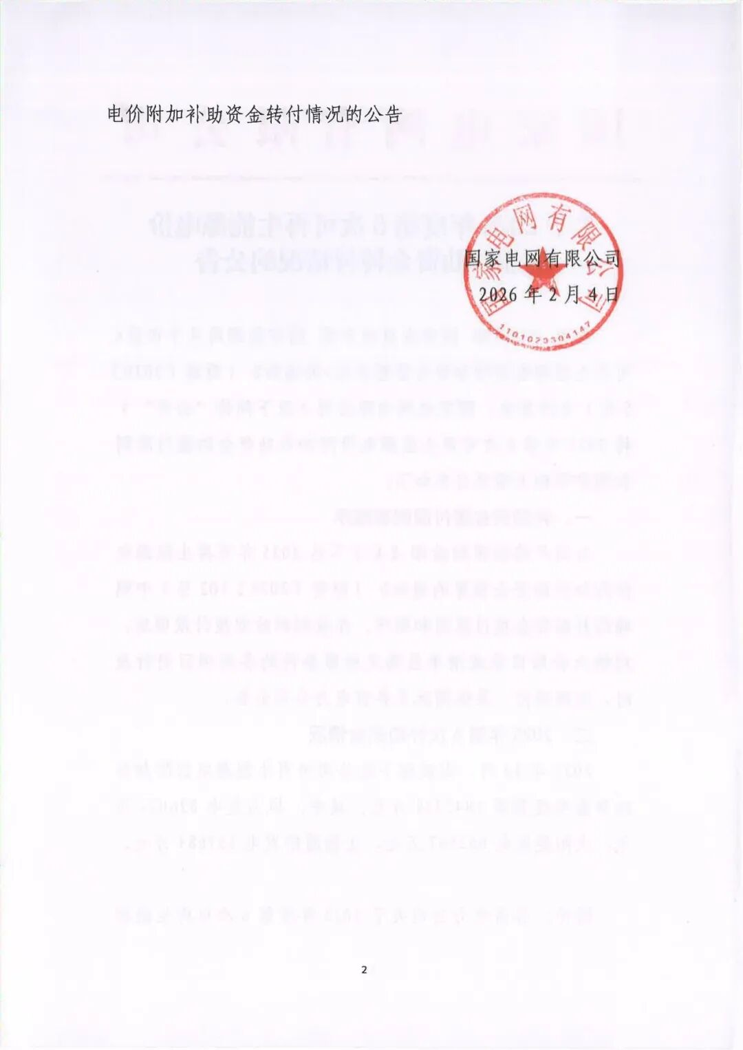2026年2月24日,国家电网有限公司发布了关于2025年度第6次可再生能源电价附加补助资金转付情况的公告。