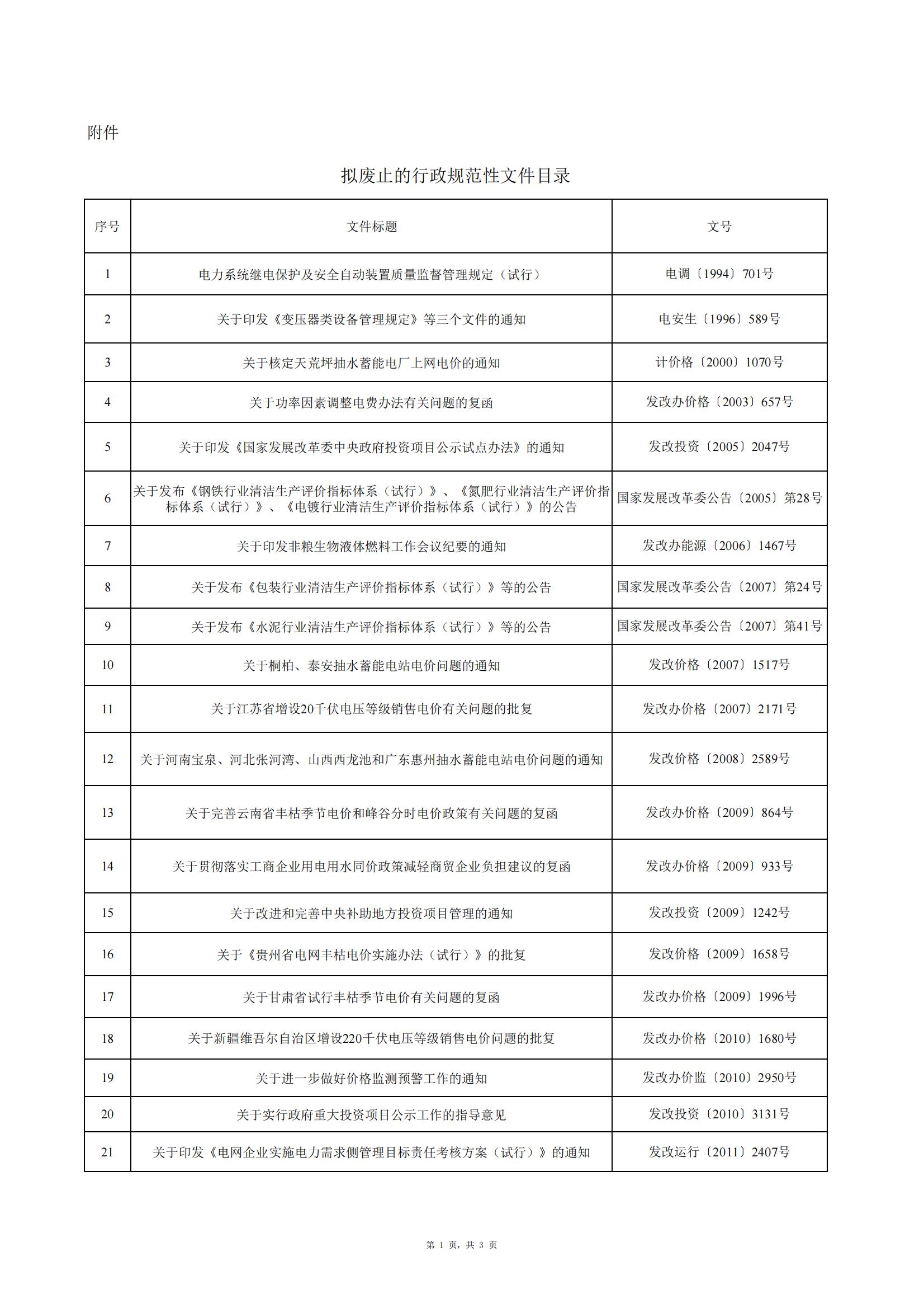 5月9日,国家发展改革委发布关于就拟废止一批行政规范性文件公开征求社会意见的公告,拟废止的行政规范性文件包括《关于甘肃省试行丰枯季节电价有关问题的复函》(发改办价格〔2009〕1996号)、《关于核定天荒坪抽水蓄能电厂上网电价的通知》(计价格〔2000〕1070号)、《关于桐柏、泰安抽水蓄能电站电价问题的通知》(发改价格〔2007〕1517号)、《关于功率因素调整电费办法有关问题的复函》(发改办价格〔2003〕657号)、《电力系统继电保护及安全自动装置质量监督管理规定(试行)》(电调〔1994〕701号)、《电网企业实施电力需求侧管理目标责任考核方案(试行)》(发改运行〔2011〕2407号)、《关于做好国家电力需求侧管理平台建设和应用工作的通知》(发改办运行〔2014〕734号)等,意见反馈截止日期为2025年6月8日。